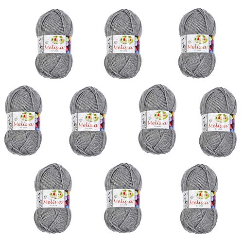 Melissa Hilo Acrílico Ovillo de Lana (115m 100g *10)Premium para DIY Tejer y Ganchillo,Certificado OEKO-TEX Standard 100,agujas talla 5(1/2)-6(1/2),Gris 65,Gruesa,Enviado desde Europa