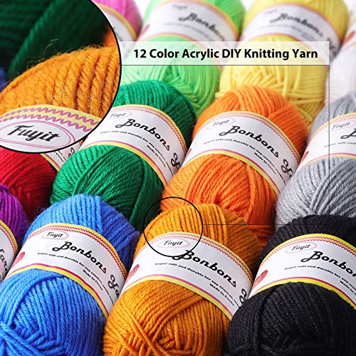 Ovillos de Lana 12x50g/colore Fuyit 100% Acrílicos Skeins perfecto para cualquier proyecto de ganchillo y punto (50gx12 Colores)