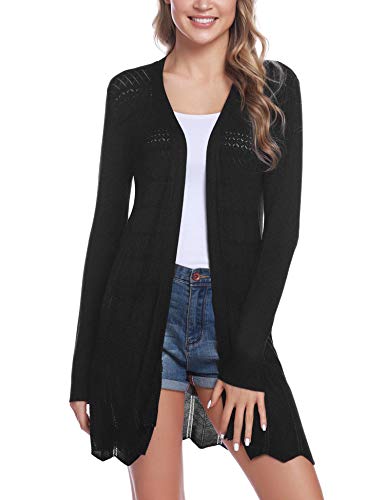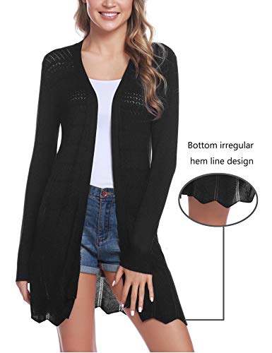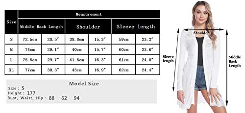 - Diseño: Cárdigan de manga larga es muy fluido y ligero, perfecto para todo el año. Diseño abierto, manga larga, crochet calado en costados, una chaqueta ligera para todas las ocasiones y combinada con jeans y vestido para llevar, más casual y cómodo.