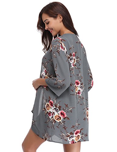 Aibrou Cárdigan Kimonos Mujer Camisolas y Pareos Pareo Playa,Cardigan Verano Manga 3/7 Tops Blusa Floral Suelta,Vacaciones Playa Chal,(Gris, S)