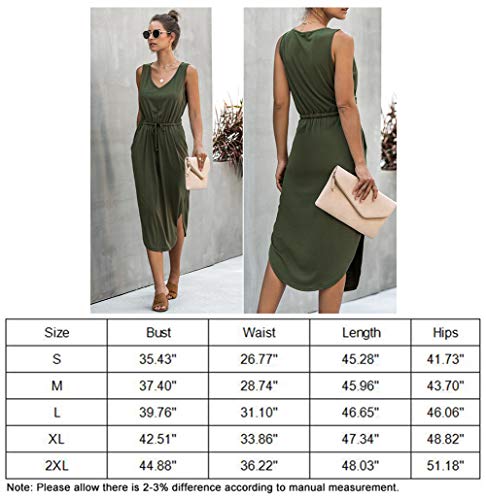 Longwu Mujer Cuello en V sin Mangas sin Mangas con cordón Lateral con Cintura Dividida Vestido de Chaleco a Media Pierna con Bolsillo Verde-M