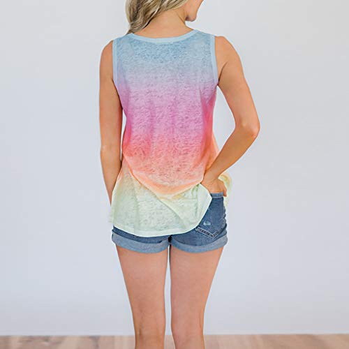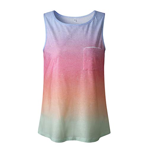 Mujer Chaleco Blusa Camiseta,Cuello Redondo para Mujer Camiseta Sin Mangas Impresa Túnica Blusa C de Las Mujeres gradiente Impreso Camiseta