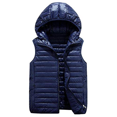 Chaleco De Plumas Mujer Invierno,Chaleco De Plumón Mujer Chaleco De Mujer Moda Tallas Grandes Extraíble Con Capucha Plumón De Pato Sin Mangas Azul Marino Color Sólido Chaqueta De Chaleco Cálido
