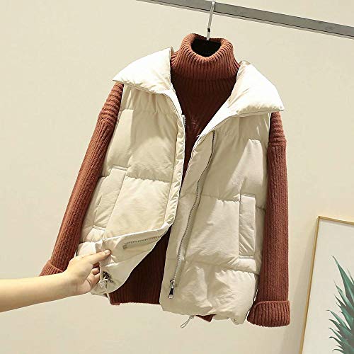 Chaleco De Plumas Mujer Invierno,Chaleco De Plumón Mujer Invierno Algodón Chaleco De Mujer Corto Moda Parkas Sin Mangas Blanco Color Sólido Chaleco Cálido Chaqueta Mujer Outwear Para Viajes Al Ai