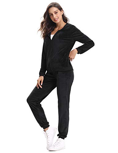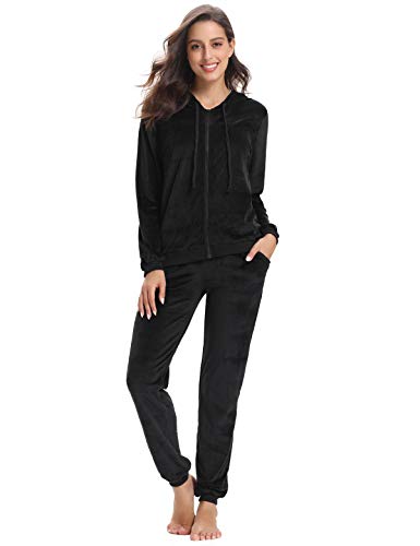 Aibrou Chandal Mujer Completo de Terciopelo,Conjunto Chándal Talla Grande,Sudadera con Capucha Cremallera con Pantalón,Conjunto Deportivo de Terciopelo,Pijamas, (Negro, S)