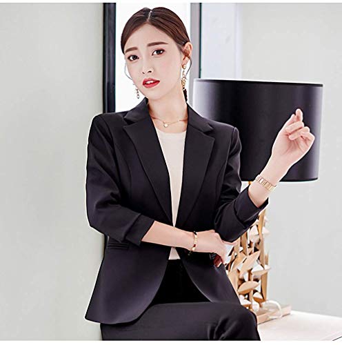 Minetom Mujer Manga Larga Blazer Elegante Oficina Negocios Parte OL Traje De Chaqueta Sólido Slim Fit Abrigo Cardigan Outwear Top A Negro ES 44