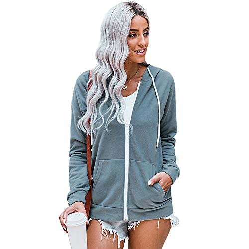 Chaqueta con Capucha y Cremallera de Manga Larga para Mujer Sudadera de Color sólido Informal Suelta con Frente Abierto (GrisAzul, XXL)