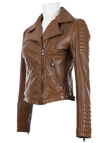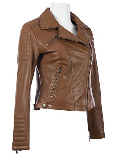 - Chaqueta de motorista corta con cremallera asimétrica de cuero auténtico muy suave de señora mujer de Aviatrix