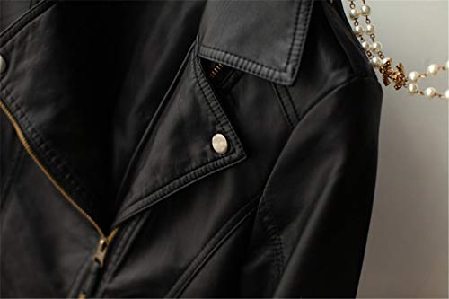 Mujer Elegante Chaqueta Cuero PU Manga Larga Moto Cazadoras Chaqueta de Motociclista Biker Abrigos Chaqueta Negro XL