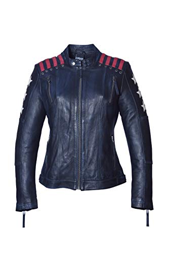 Urban Leather Chaqueta Moto Mujer Con Protecciones |Cazadora Moto Mujer Rising Star | Chaqueta Piel Moto con Protecciones CE Para Hombros, Codos y Espalda|Azul Marino |2XL
