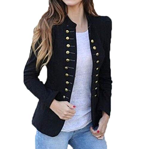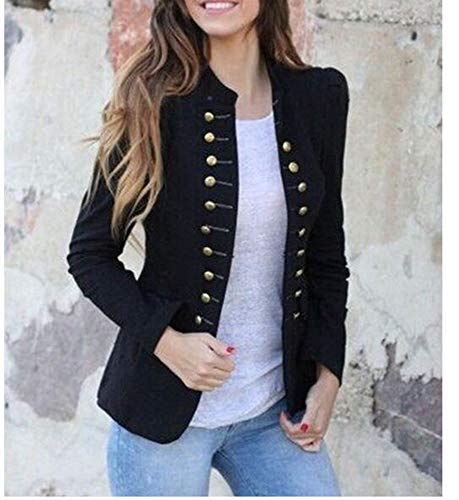 Huateng Blazer Militar para Mujer Chaqueta de Trabajo de Doble Botonadura Chaqueta con Frente Abierta Abrigo