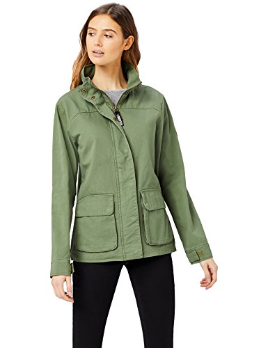 HIKARO Chaqueta con Cremallera Mujer, Verde (Khaki), 42 (Talla del fabricante: Large)