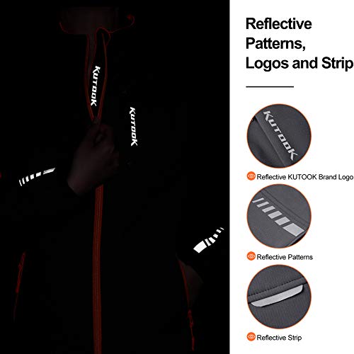 KUTOOK Chaqueta Impermeable Reflectante para Hombre Mujer, Chubasquero Impermeable y Transpirable 10000/5000 con Capucha Desmontable para Running Escalada Senderismo Trekking ETC