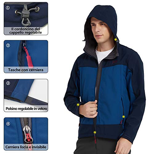 BALCONY & FALCON Chaqueta de Senderismo para Hombre Chaqueta Softshell Chaqueta de Trekking Resistente al Agua y Transpirable. (Azul Oscuro, M)