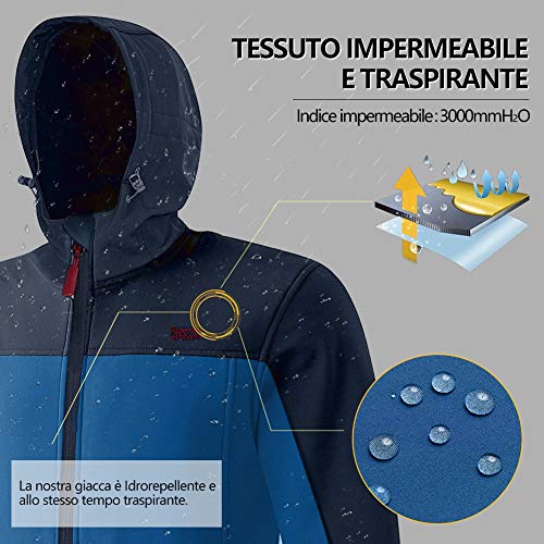 BOLF Hombre Softshell Chaqueta con Capucha Funciones Chaqueta Impermeable Cortaviento Transpirable Freestep P06 Azul S [4D4]