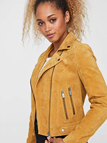 Vero Moda Vmroycesalon Short Suede Jacket Col Chaqueta, Amarillo (Amber Gold Amber Gold), Small para Mujer