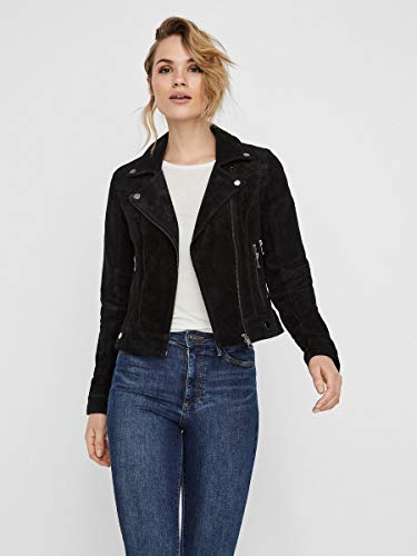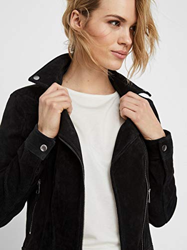 Vero Moda Vmroycesalon Short Suede Jacket Noos Chaqueta de Cuero, Black, L para Mujer