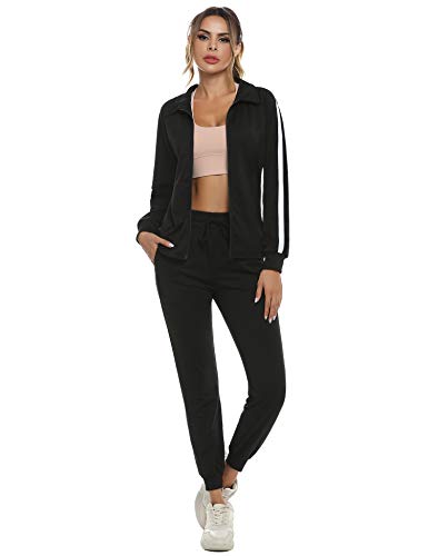 Doaraha Chándal para Mujer 2 Piezas Casual Raya Conjuntos Deportivos Completo Chaquetas Deportivas + Pantalones Largos para Primavera Otoño Invierno