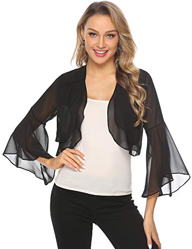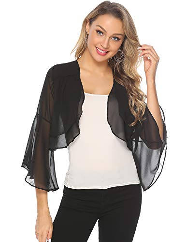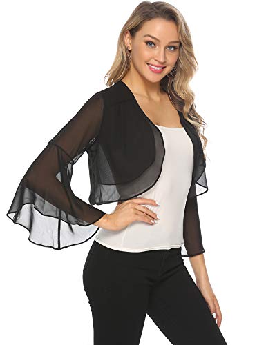 Aibrou Bolero para Mujer,Cardigan de Gasa Manga 3/4 Ruffle Chiffon para Verano,Mantón de Vacaciones,Torera Corta Casual Chaqueta de Gasa para Fiesta Boda,(Negro,S)