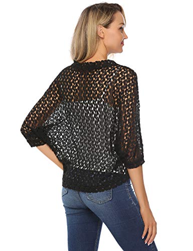 - 【Características】Cárdigan con frente abierto de ganchillo, manga de murciélago de 3/4, el bolero se encoge de hombros para mujeres, damas, jóvenes y adolescentes.