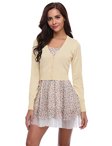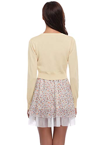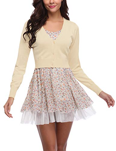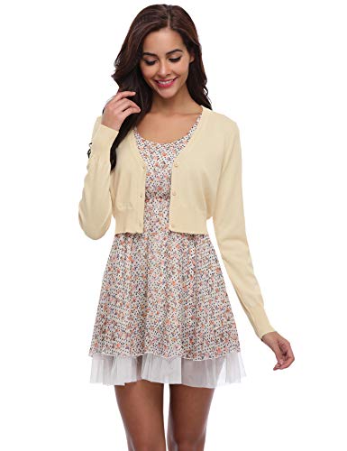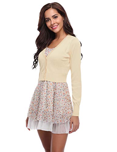 Abollria Cárdigan Corto Mujer Casual Chaqueta Punto Manga Larga Fiesta Bolero Boda Torera Cuello V con Botones para Primavera Otoño