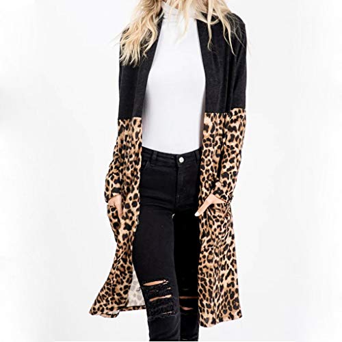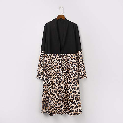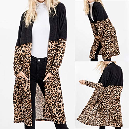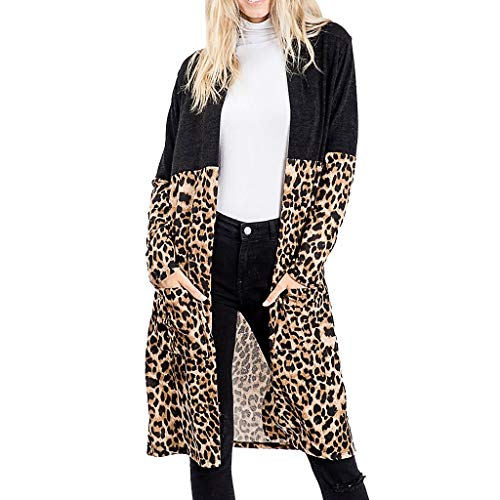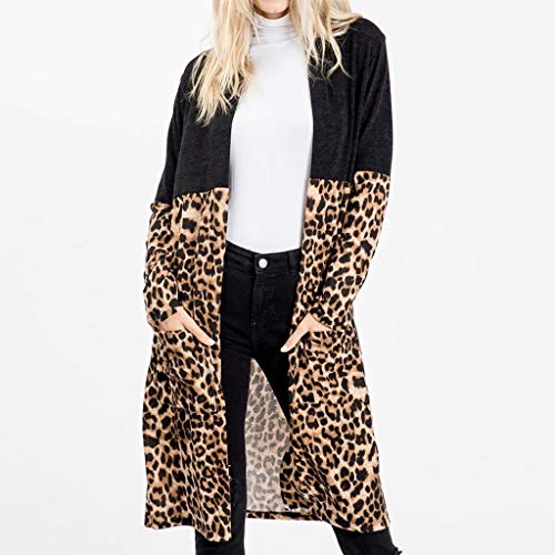 Posional Moda para Mujer Estampado De Leopardo Empalme Manga Larga Chaqueta De Punto Blusa Tops Largos
