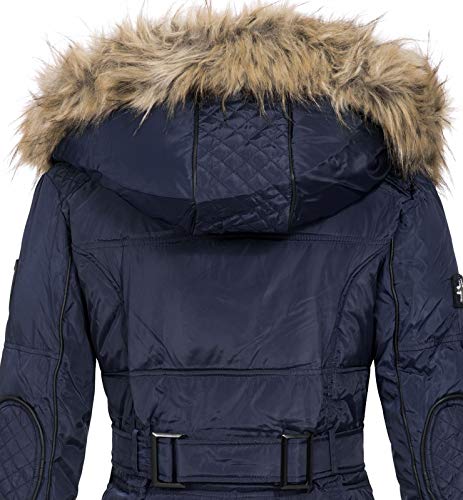 Geographical Norway BEAUTIFUL LADY - Parka cálida mujer - Abrigo grueso capucha de piel falsa - Chaqueta de invierno - Chaqueta larga con forro cálido - Regalo para mujer Moda casual (Azul marino L)