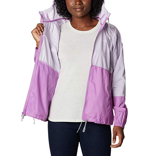 - Contenido: 1 x Columbia Flash Forward, Chaqueta cortavientos, Mujer, Material: Cortavientos de cara mate 100% poliéster de tejido liso, Color: Rosa (Pale Lilac, Blossom Pink), Talla: M, Art.No. 1585911