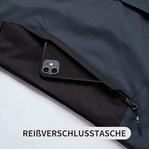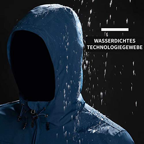 - Chaqueta cortavientos con capucha y material que absorbe el agua, Adecuado para llevar de día y de noche, Óptimo para el excursionismo, las actividades al aire libre y el uso cotidiano, Ajuste activo