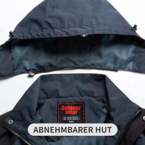 - ☂【Más Ajuste 】: Esta chaqueta impermeable con capucha desmontable, equipado con protección para la barbilla en el cuello. El puño con velcro y el bajo con cordón ajustableaseguran un ajuste perfecto, evitan que pase el aire frío y la lluvia