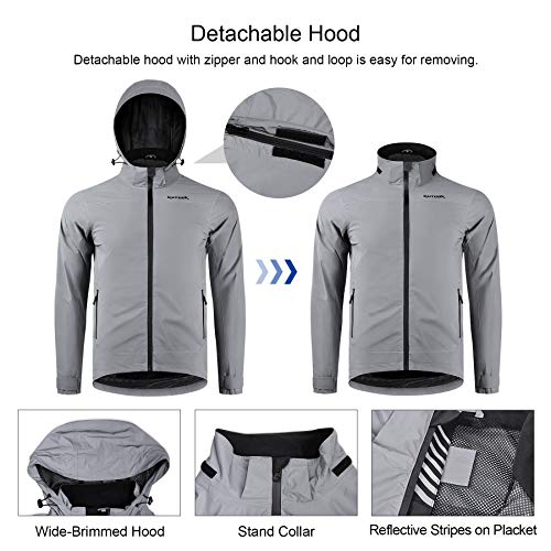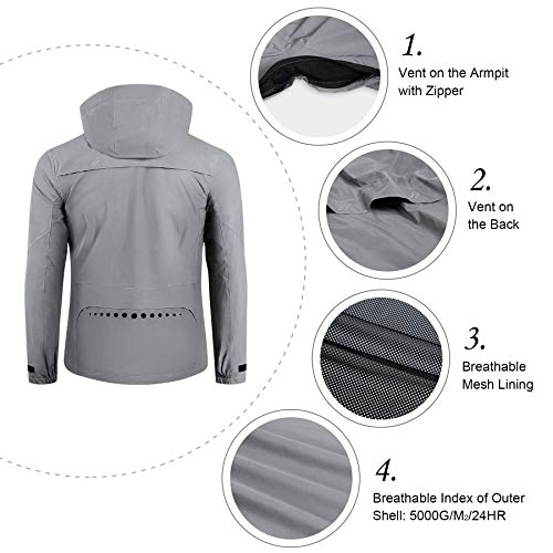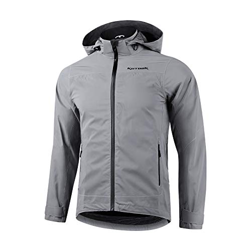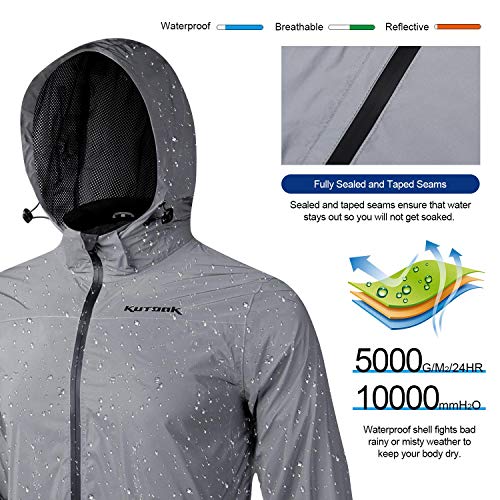 KUTOOK Chaqueta Impermeable Reflectante para Hombre Mujer, Chubasquero Impermeable y Transpirable 10000/5000 con Capucha Desmontable para Running Escalada Senderismo Trekking ETC
