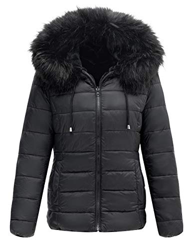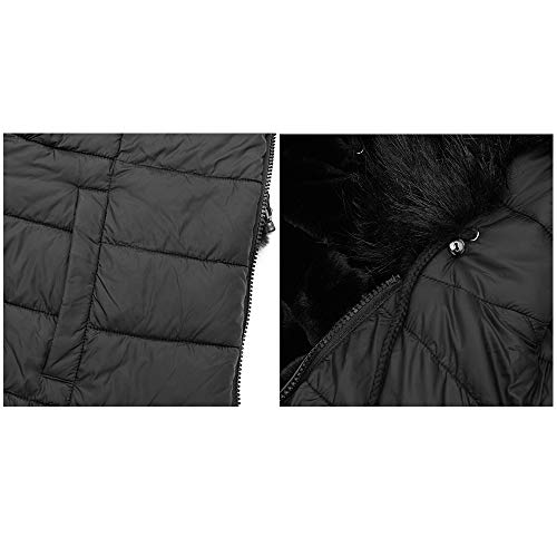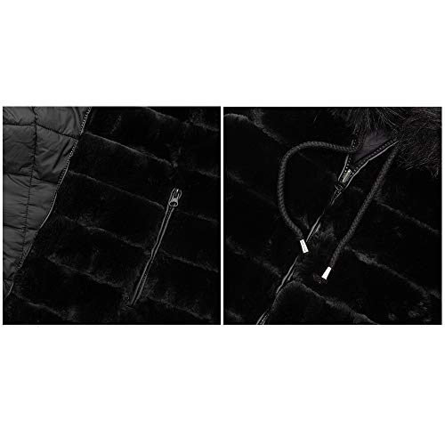 Giolshon Chaqueta de Doble Cara de Lana sintética para Mujer usada en Ambos Lados, el Abrigo Acolchado con Capucha y Cuello de Piel Negro X-Grande
