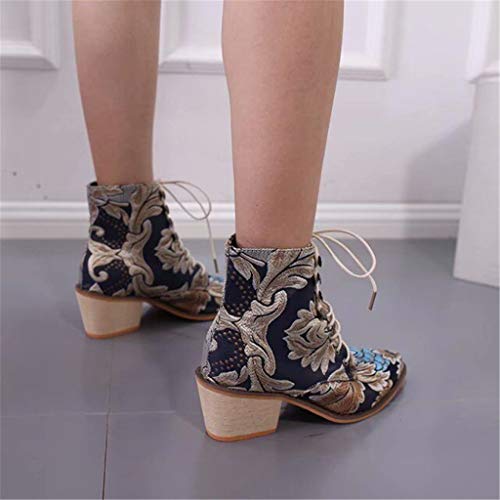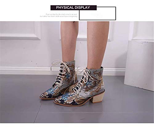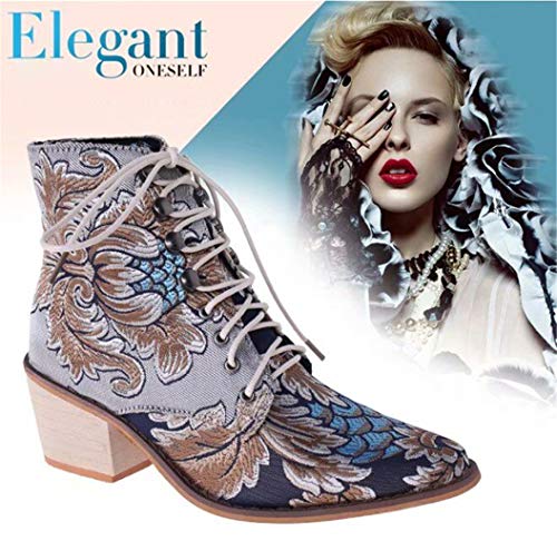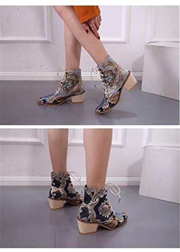 - ★ Ocasión: diseño exquisito, patrones especiales. Deja que seas el más especial. Estos botines súper modernos son perfectos para casi cualquier ocasión. Botines de tacón alto con bordado de satén vintage para mujer, grueso y puntiagudo.