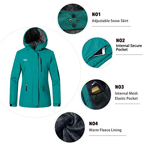 Wantdo Chaqueta de Esquí Snowboard Exteriores Chaqueta Impermeable a Prueba de Viento Abrigo Aislada con Vellón Invierno Parka de Montaña de Senderismo Deportiva para Mujer Azul Saboya Oscuro Medium