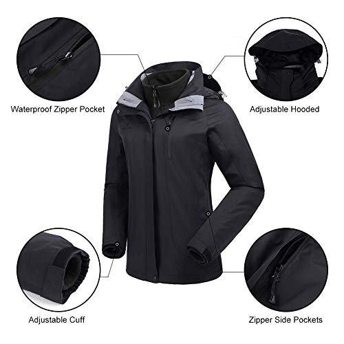 CAMEL CROWN Chaqueta Impermeable con Capucha para Mujer A Prueba de Viento Chaqueta de Esquí con Forro Polar, Jacket Invierno para Montaña Cámping Viajes Snowboard Deportes (Negro, M (ES))