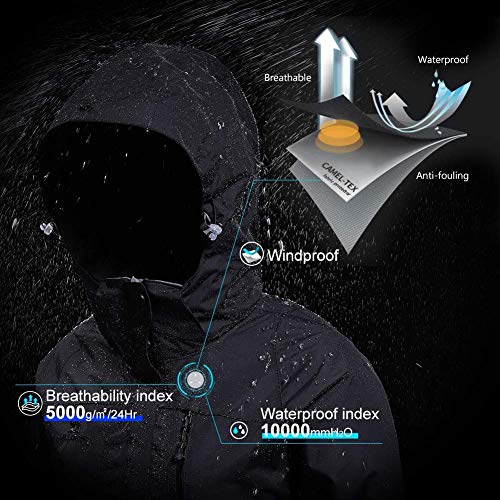 - Chaqueta de esquí impermeable : revestimiento profesional repelente al agua, el nivel de impermeabilidad es de 10000 mm / H2O y todas las cremalleras son de diseño resistente al agua, no se preocupará por mojarse al esquiar, hacer snowboard o en días lluviosos, nuestra chaqueta impermeable protegerá Usted es eficaz, mantiene su cuerpo seco y cálido todo el día, también puede combatir el mal tiempo lluvioso o brumoso.