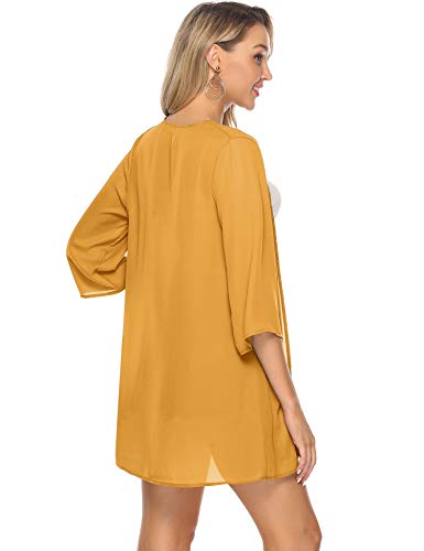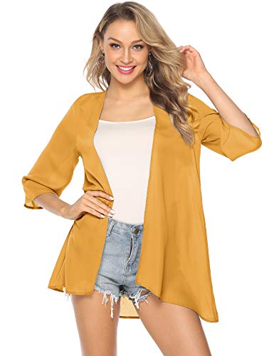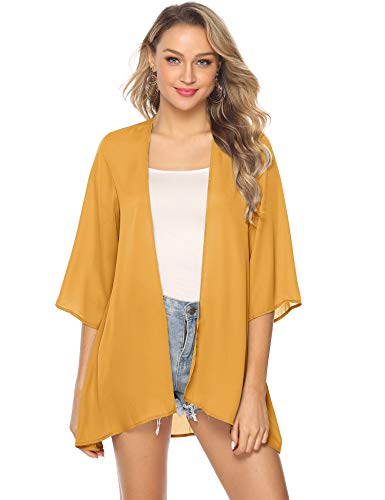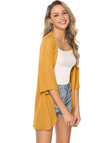Abollria Playa Cárdigan Verano Chaqueta Kimono de Gasa Manga 3/4 Ropa de Baño Cover Up Casual Capas para para Mujer Amarillo S