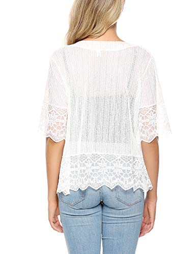Aibrou Cárdigan de Encaje de Manga Corta para Mujer,Chaquetas Ganchillo Suelto,Chaqueta Kimono Playa,Vacaciones Playa Chal Camisolas y Pareos para Verano, (Blanco, S)