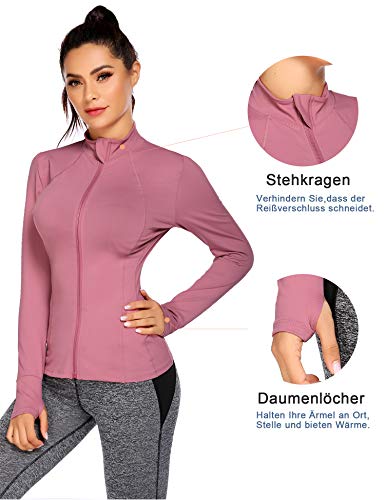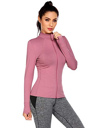 Balancora Chaqueta de running para mujer, transpirable, ligera, deportiva, fina, para otoño, entrenamiento de golf, fitness, deporte, rosa, talla S