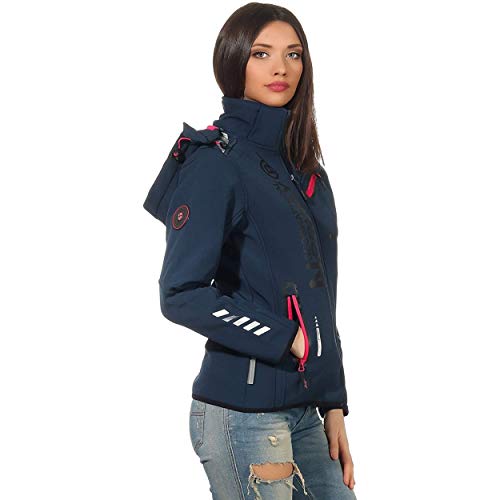 Geographical Norway REVEUSE LADY - Chaqueta Softshell Impermeable Mujer - Capucha Exteriores - Jacket Resistente Cortavientos Invierno - Senderismo Actividades Aire Libre Azul / Rosa L - Talla 3