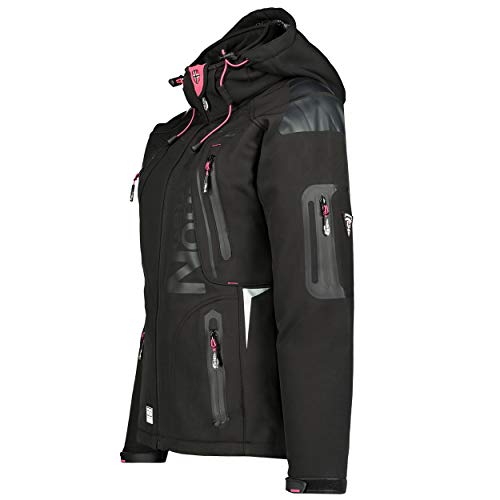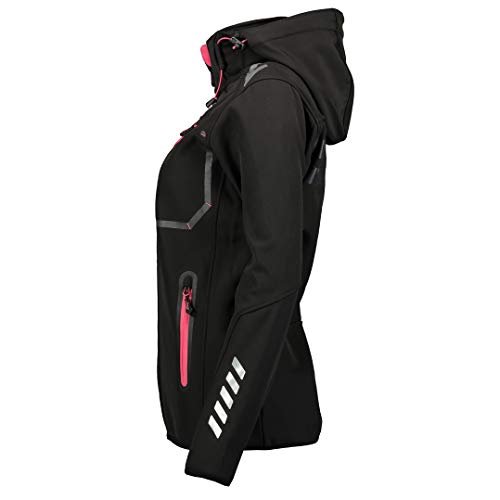 Geographical Norway REINE LADY - Chaqueta Softshell Impermeable Mujer - Chaqueta Capucha Exteriores - Chaqueta Cortavientos Invierno - Actividades Senderismo Aire Libre (Negro/Rosa L) Talla 3