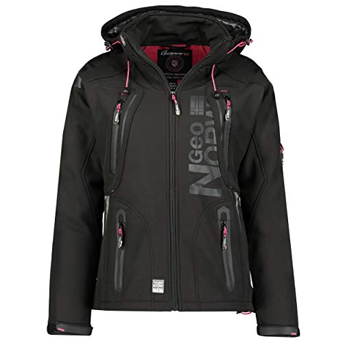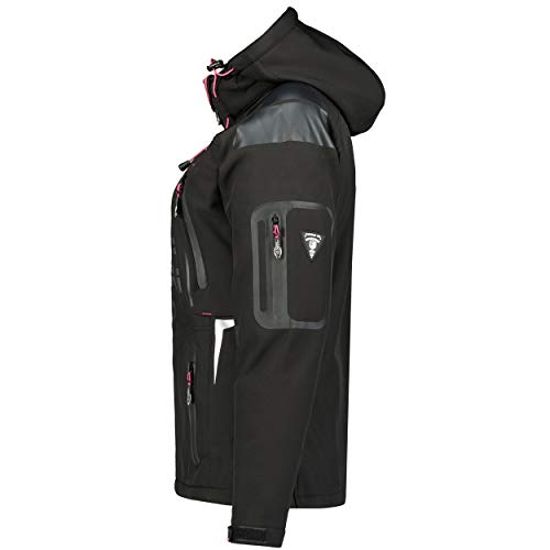 GEO NORWAY TISLANDE LADY - Chaqueta Softshell Impermeable Mujer - Chaqueta Capucha Cremallera Resistente Invierno - Actividades Aire Libre Senderismo NEGRO / ROSA FLASH - L