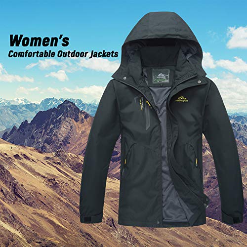LHHMZ Chaqueta de senderismo a prueba de viento para mujer, ligera, transpirable, impermeable, al aire libre, Softshell casual abrigos con capucha, Mujer, 02negro, XL