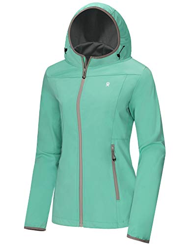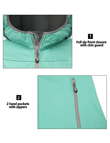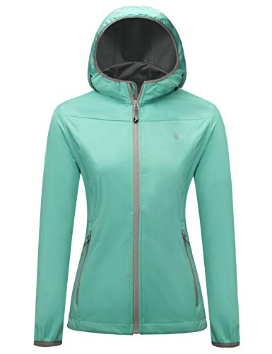 Little Donkey Andy Chaqueta Softshell ligera con capucha para mujer, para correr, viajes, senderismo, resistente al viento, repelente al agua, color verde aguamarina, talla S