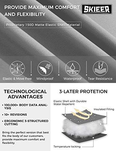 - Cálido mejorado: este abrigo de nieve cálido puede soportar fácilmente el clima frío extremo alrededor de -5 ℉ ~ 5 ℉ (casi-20 ℃ ~ -15 ℃). Puede combinar con una capa base cuando la temperatura exterior es de 10 ℉ ~ 20 ℉, porque el material interior Pongee hace que sea cómodo tocar directamente la piel sin sentir frío.