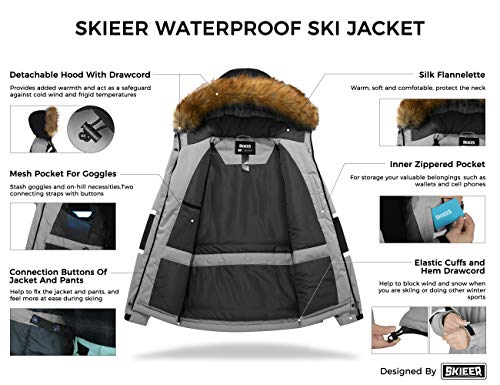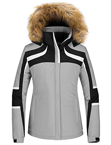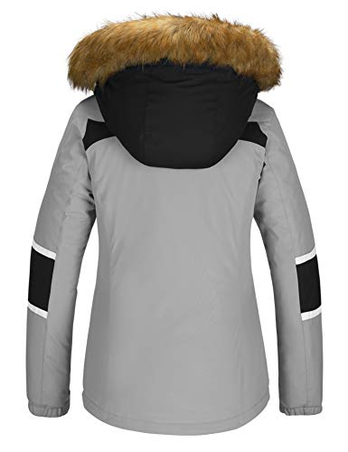 Skieer Abrigo de Invierno Aislada con Vellón Chaqueta de Montaña de Senderismo Chaqueta Capucha a Prueba de Viento Parka Snowboard de Esquí Exteriores Mujeres Gris X-Large