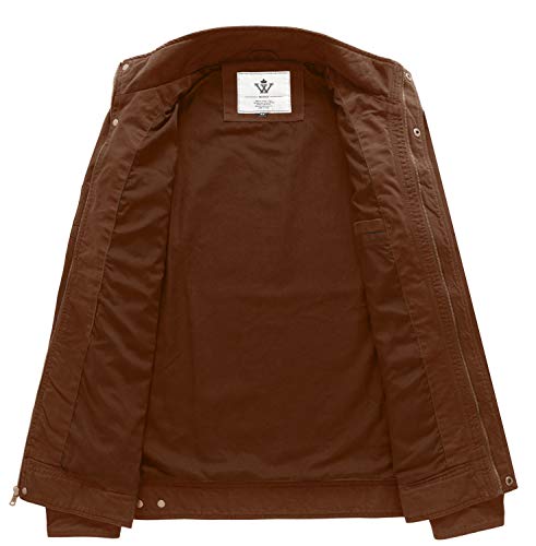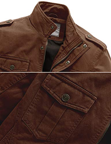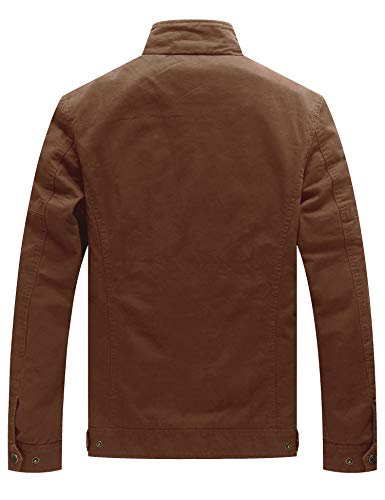 WenVen Chaqueta de Algodón Casual Chaqueta Cuello Alto Sahariana Chaqueta Tres Cuartos Multibolsillos Chaqueta Informal con Botón Hombre Marrón Small