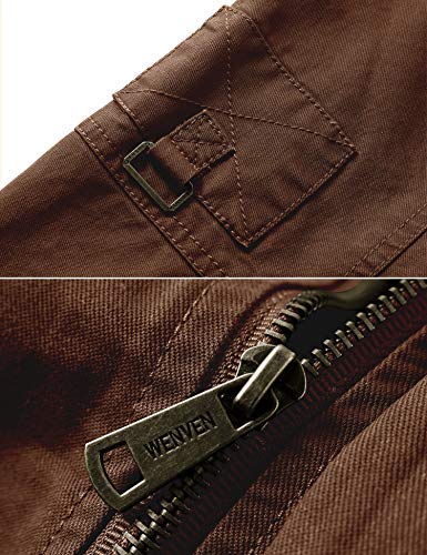 WenVen Chaqueta Clásica al Aire Libre Chaqueta de Algodón Casual Chaqueta Tres Cuartos Multibolsillos Chaqueta Fina Joven Hombre Marrón Small