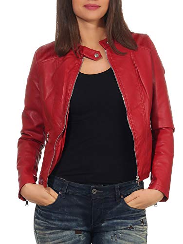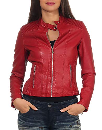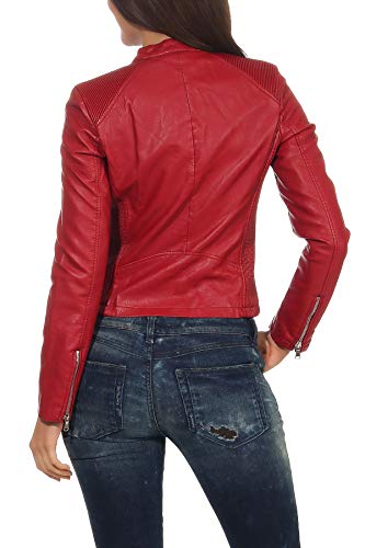 Malito Mujer Chaqueta Cuero Sintético Acolchado Biker Chaqueta 5195 (Burdeos, 40)