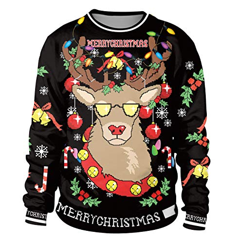 Sudadera Navidad Estampadas Sudaderas Navideñas Unisex Jersey Sueter Navideño Hombre Mujer Reno Sweaters Pullover Cuello Redondo Largas Chica Anchas Deportivas Invierno Camisetas Personalizadas L